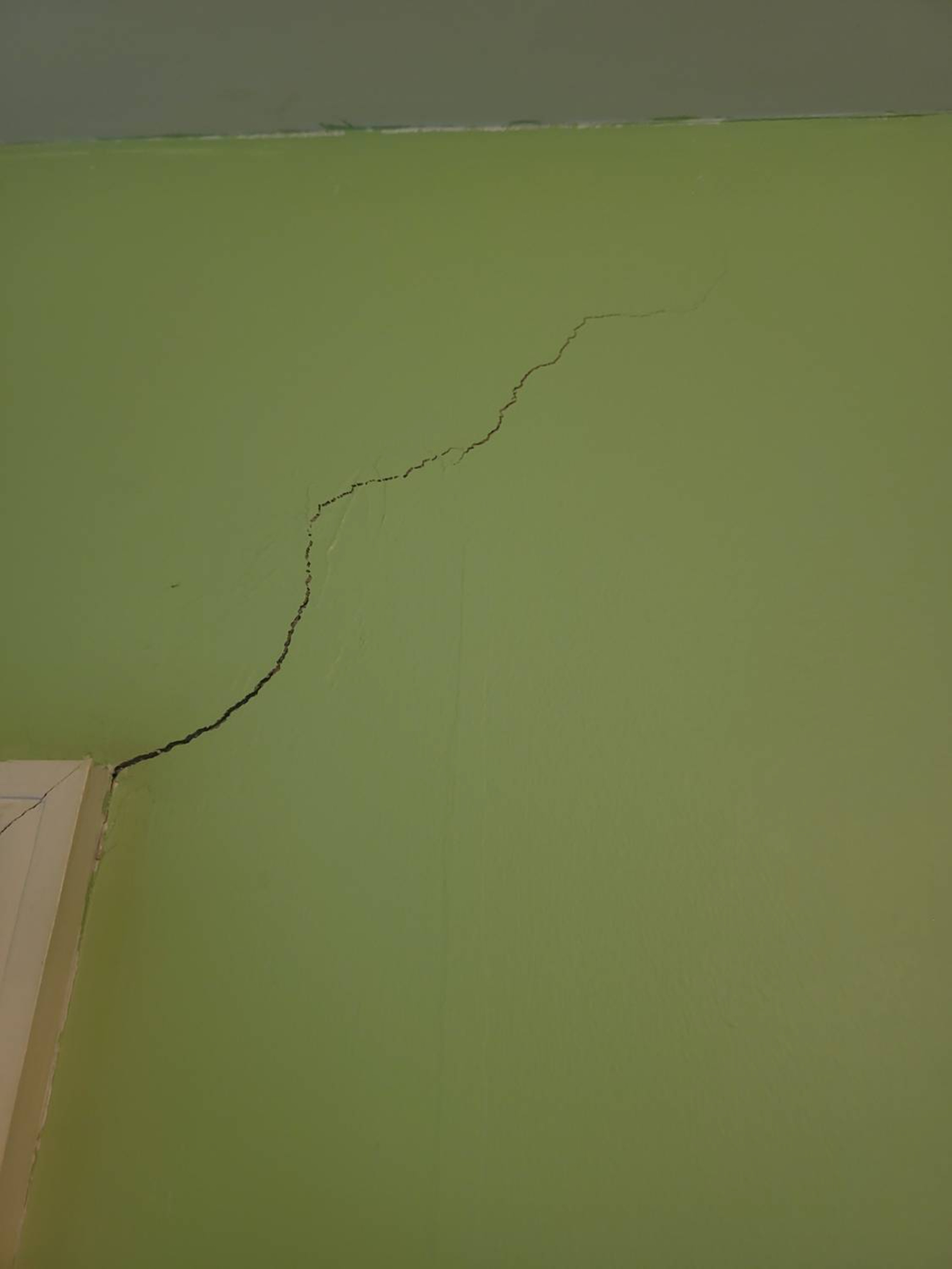 doorway that would not close properly, with excessive cracking above the frame. This condition often indicates